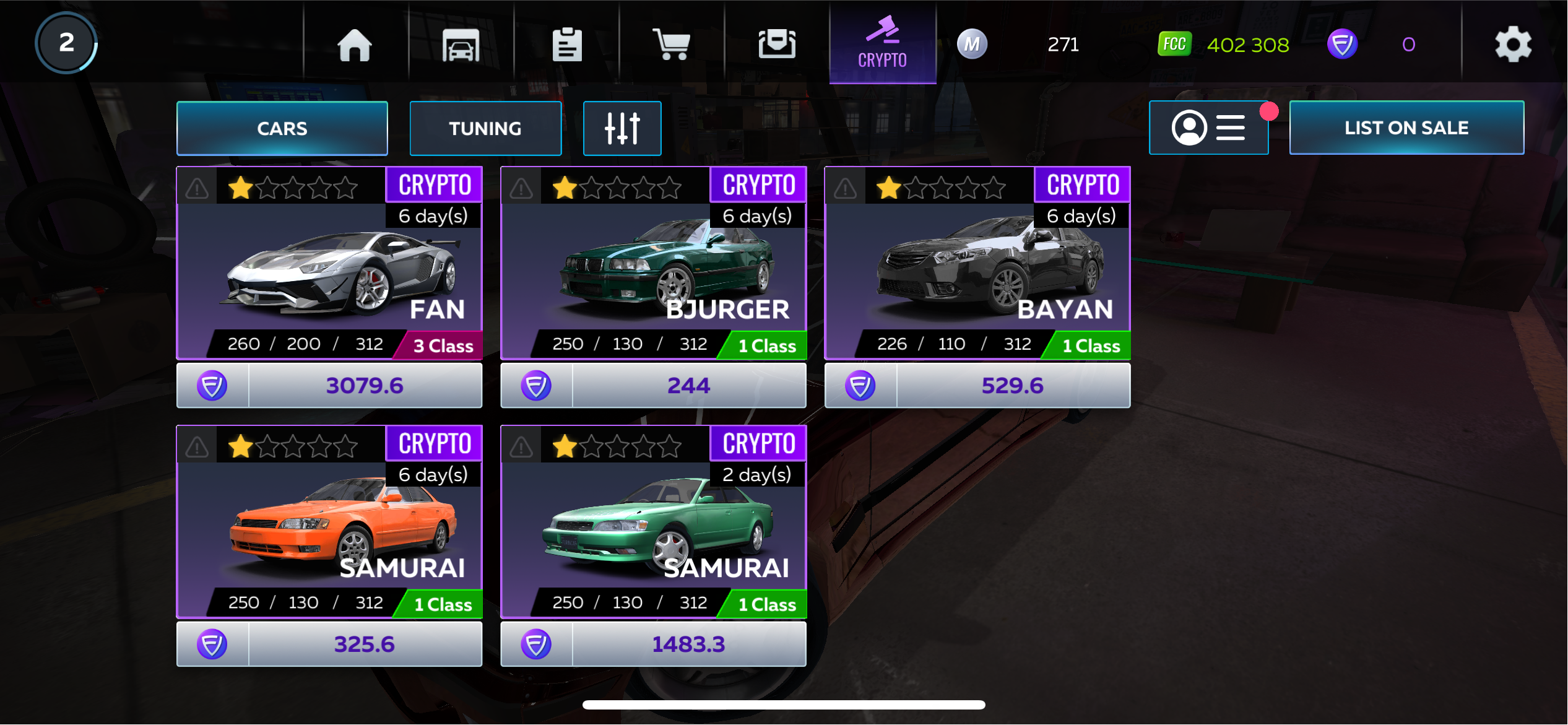 Players have access to a secondary market within the game, where they can trade cars and tuning details. They can list their <mark style="color:purple;">Crypto</mark> cars for sale or purchase <mark style="color:purple;">Crypto</mark> items they are interested in from other players without leaving the application.